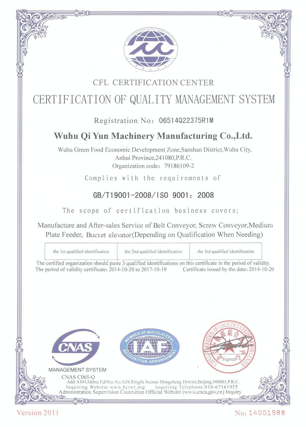 擁有專利特有技術(shù)的“蕪起”牌斗式提升機(jī)以其優(yōu)秀的品質(zhì)、優(yōu)越的環(huán)保性獲得用戶的青睞。產(chǎn)品遍布全國(guó)。。。。